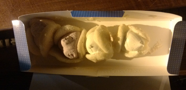 ![]() 国庆节我们去成都玩时,正好罐罐的哥哥的朋友买了糕点送给他们品尝,说是排了一个多小时队伍才买到的,当时看外包装真的是其貌不扬呀,就一个一般的塑料袋装的,很简易的包装,而且糕点还有很多都粘在袋子上面了,感觉不是很好。而且第一吃时觉得不般,好像有点厚重感。第二天吃时,就把里面的糕点取出来,分成一层一层的吃,感觉就完全不一样,每一层的味蕾感觉就不一样了。可惜上次去没时间去寻找在那里买的。 ![]() 这次因为时间比较充足,再加上念念不忘,也就专门花了两天时间才寻找到。为什么说两天时间呢。因为第一天是罐罐的姑姑和我们一起去玩的,临时说起去找美食的,因为我们都不知道是在那里,只能凭借罐爸用手机上网来慢慢查找,可成都的道路本来就是一圈一圈环绕的,也就很耽误时间,结果到下午5点过了都还没找到,姑姑的姑姑就着急要回去了,第一天寻找就以失败结束。 ![]() 那知道第二天罐爸不死心,我们又出去寻找了,坐公交车去到地铁,再坐地铁,在中途什么地方下的我忘记了,反正跟着罐爸走就是了。呵呵 ![]() 终于在天黑时找到了这家传说中的宫廷糕点,果真是要排队,连晚上了都还是在排着队伍的,而且还是3个窗口同时在开卖呢,可见白天的人就更多了。 ![]() 很醒目的招牌和价格表 ![]() 罐爸在排队时,罐罐在旁边玩呢 ![]() 冰淇淋蛋糕,这个是4元一盒 ![]() 里面是4个小蛋糕,两种不同口味的冰淇淋,一种是香芋的,一种是奶油的,中间园球就是冰淇淋,外面是 蛋糕裹着的 ![]() 看看罐罐马上就开吃起来了 ![]() 这就是我念念不忘的美食----拿破仑蛋糕 竟然才9.8一斤,便宜呀,马上就买了二斤 ![]() 来个细节图,面上的很舒脆,中间有点类似于奶油,夹有葡萄干的 ![]() 这个是给罐罐的姑夫买的葱油饼,是咸的,特地要的这种长条形状的,好像是12.8一斤 ![]() 这个是蜜豆蛋糕,9。8一斤。面上是蛋糕,里面很多的红豆,葡萄干,里面的料实在是太足了,而且有点甜,一个是吃不完的,最少掰成两次才能吃完 ![]() 看到我们拿回家,大家都在忙着品尝蛋糕去了,罐罐却在一边去吃酥肉去了 ![]() 这小吃货,可真会享受呀,一边在看动画片,一边吃东西呢 ![]() 这是我们在那里买了蛋糕,看见有家洞子口张老二凉粉,罐爸说是很有名的,非叫进去尝尝 ![]() 传说中的涨老二凉粉,5元一碗,真便宜呀,我们重庆都要6元了,锦里那里是12一碗。而且我们在那里吃时也看见有很多人都是慕名而去的,而且凉粉卖完就没有了,好像那时是7点多吧,就在准备下班了。 ![]() 牛肉粉,也就是我们说的酸辣粉,只是是加的牛肉的,没有我们重庆的辣就是了。这个是8元一碗,锦里是12一碗。 ![]() 龙抄手,是6元一碗,比锦里的便宜多了,锦里那里是12一碗,这个肯定就是罐罐吃的了。 ![]() 还有碗炸酱面,6元一碗,锦里是12一碗,发觉锦里的东西真的要贵多了。 ![]() 偷偷告诉你们,那买的两斤拿破仑被我一个人消灭了,本来还想去买两斤带回来,因为实在是有点远,还是放弃这个念头了,只好等下次再去成都时,再去买了。呵呵