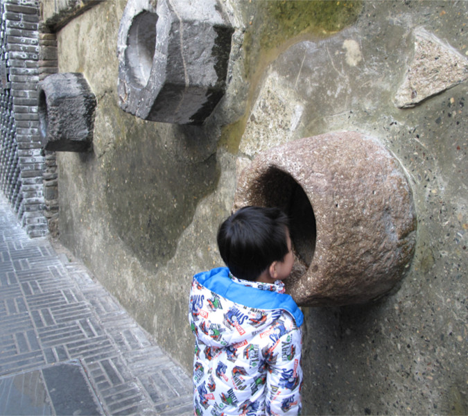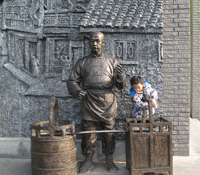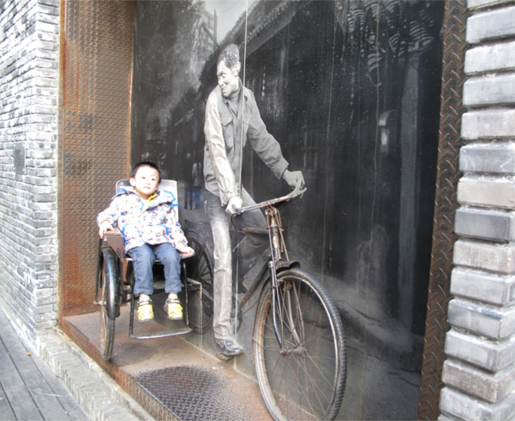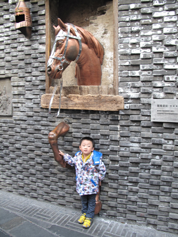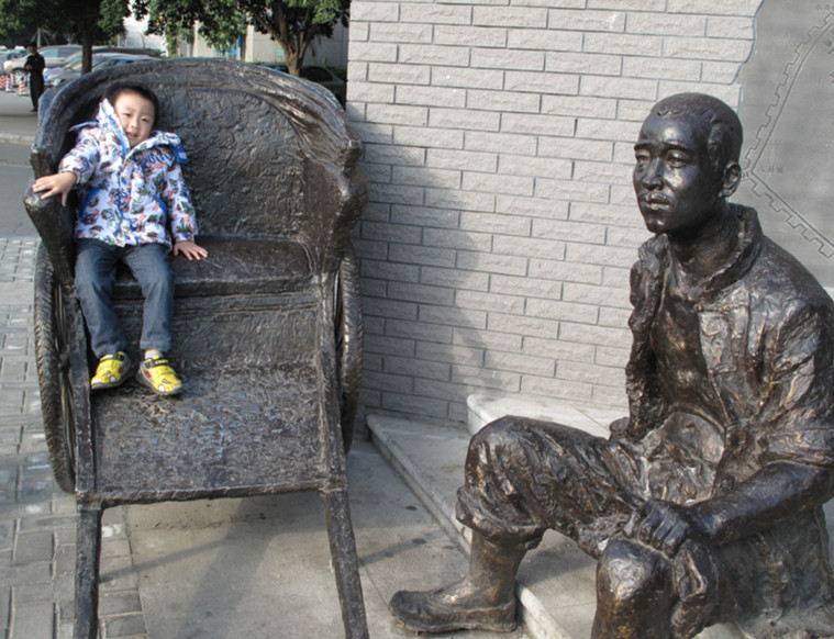 ![]() 国庆节我们才去过成都的宽窄巷子,可那次去因为不熟悉路线,以至于到时都是晚上了,所以这个月11号又去成都去了,那怎么也要去看看白天的宽窄巷子,因为我知道那里有很多很特别的墙壁,每一面墙壁都应该可以说是在诉说它自己的故事。来吧,跟着我的相片,让罐罐带你们一起来去欣赏吧。 ![]() 这个应该是叫人力车吧,罐罐老远就看见,直接就自己跑上去坐着了,只是因为这个车子是手柄是放下来的,所以罐罐坐着就老是往下滑的,呵呵 ![]() 而且这里离宽窄巷子还有段距离呢,这是在大马路边的,就已经是很有特色了。 ![]() 看看罐罐跑到那里坐去了,非要跑到那雕塑车夫身上去坐起,可惜迎着太阳的,眼睛睁不开了 ![]() 咦,罐罐又在干嘛。 哈哈,这个一看就知道是在卖豆腐脑的担子,方型的是放调料的,园型的桶是放豆腐脑的,这个我们小时可是经常见的,这种是直接挑着在走街串巷的吆喝着卖的。可惜现在差不多都没有了,所以罐罐是很好奇了,他都没见过 ![]() 往前走大概500米吧,开始了我们探秘咯 第一副墙就是很多这样,是叫门扣还是什么?我不知道怎么叫的,呵呵 ![]() 这副墙很有一种强烈的视觉效果,说不出是什么感觉 ![]() 这个一看就知道,邮局的自行车,只是这个自行车很特别,有一半在外面的,也就体现了立体感 ![]() 邮桶,看着这个就觉得好亲切,现在都已经这么发达了,网络,快递什么的都有,想想都已经是好久好久写过信了。还记得以前我同学在外地时,还曾经写过好几封信呢。现在都直接是QQ或者手机短信联系了。不得不感态时光飞逝呀 ![]() 缝纫机,这个我外婆家有,以前还会去踩几下的,简单的缝缝补补都是我外婆自己用缝纫机搞定的。 烧火的灶台,下面是风箱,那个风箱还可以拉动的,罐罐自己在那里拉着玩了好久才走的,觉得这些都很好奇 ![]() 这副墙很有特色,全部是这样密密麻麻的的长钉子,但这个钉子只能拉到这样的位置,而且还是有些可以拉动,有些是不能活动的,拉出来就是不同的字或者是心型状的样子 ![]() 这匹马很有特色吧,马头和脚在外面的,本来罐罐是很去拉马的缰绳的,可惜实在是不够不着,只有摸摸马腿了,哈哈 ![]() 墙壁上的浮雕 ![]() 这个是什么几重门,具体是什么意思不明白 ![]() 罐罐在看什么呢,在往里面看有什么东西呢,其实里面就是水晶玻璃,有点象看万花镜的感觉,墙的中间远看好像是湿的,其实的有一块水晶,在水晶的后面有水在里面的 ![]() 这个一看就是人力三轮车,椅子部分是专门设计在外面的,很有立体感的,也很特别 ![]() 本来还有些照片,实在是不想整理了,就当做卖个关子吧,保持点神秘感,有喜欢的亲可以到这里来看看,很不错,很特别的地方。 本作品未经作者许可不得转载,转载请征求作者意见。擅自转载使用,将保留追究其法律责任的权利!