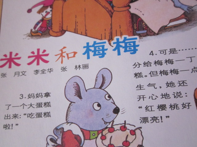 阅读日期:11月29日 参与人员:妈妈和宝宝 适读年龄:3-8岁 阅读心得::这是个很不错的小故事,简单叙述一下,米米的小表妹梅梅要来做客了,米米是个男孩,他不喜欢女孩,觉得女孩都是小气包,梅梅来了,她还给米米带了玩具兵,因为男孩子都喜欢玩这个的,可是米米却并不领情,不接受表妹送的玩具呢,妈妈拿来了一个大蛋糕,米米只分给妹妹一小块,可是梅梅并没有生气,而是十分开心,因为米米分给她的蛋糕上面有个漂亮的樱桃呢,小猴拉拉来约米米一起爬树,梅梅也要去,米米觉得梅梅真讨厌,上哪儿都要跟着自己,梅梅爬树的时候不小心摔了下来,哭了,米米说:“哎,女孩子都是爱哭虫,”可是梅梅只哭了一会儿,就不哭了,和他们继续玩儿起来,小猴拉拉提议玩儿“打仗”的游戏,梅梅拍手赞成,这回,梅梅是最棒的的“士兵” ,瞧。他们玩儿的多带劲儿呀,米米想,:“女孩子有时候也不太讨厌呀!”梅梅还教拉拉和米米玩儿跳房子,梅梅还认识好多蘑菇呢,吃晚饭的时候,米米把最好吃的菜夹给梅梅,还自豪的说:“梅梅是我最好的妹妹” 其实孩子之间的友谊有时候就是这么简单,男孩子和女孩儿一起玩儿也能很开心,妞儿现在就很适合听这样的故事呢,因为也不知道为什么,她不愿意和男孩子玩儿呢,整天都说她之和女孩子玩儿,因为自己是女孩子,哎,,,这怎么行呢,幼儿园里的同学可都是好朋友呢,要一起玩儿才开心哦,而且男孩子也有男孩子的值得学习的地方呢。 本作品未经作者许可不得转载,转载请征求作者意见。擅自转载使用,将保留追究其法律责任的权利! 个性签名