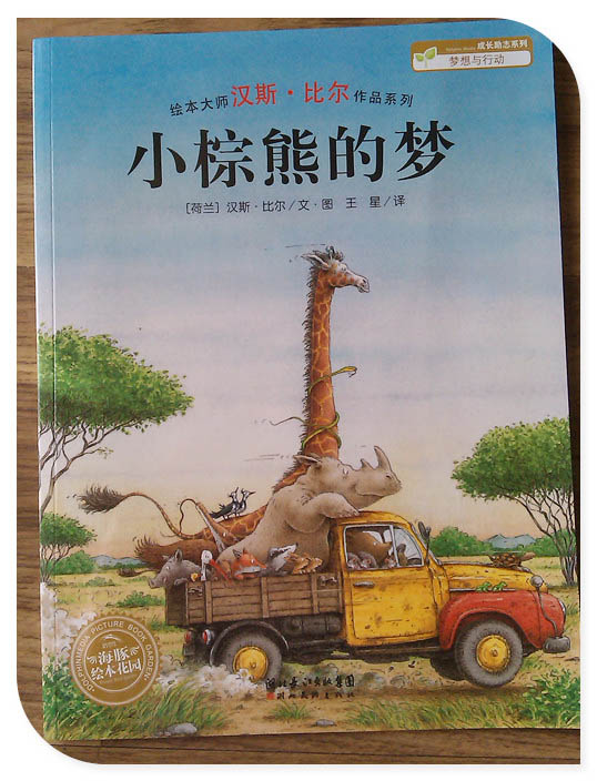 阅读日期: 12月2日 参与人员:妈妈和宝宝 阅读绘本:《小棕熊的梦》 绘本特色:温馨的画面,有趣的故事,可爱的故事形象带给孩子敢尝试的勇气 适读年龄:3-6 阅读心得: 《小棕熊的梦》,一个关于小棕熊的南方梦幻之旅,画面非常的优美,文字也非常的抒情,那种对未来美好的期盼并且付诸行动的过程是很感染孩子的,让孩子的心也蠢蠢欲动,很享受的一个故事。小棕熊,这是个人见人爱的故事形象,本故事中的小棕熊叫做小奔,这是离开父母的怀抱开始独自生活的一只棕熊。他最不喜欢的季节就是冬季了,冬天里独立的他不能像以前一样和兄弟姐妹们住在温暖的大洞穴里面,眼看着要来临的冬季,小奔也开始为自己挖建冬眠的洞穴了,他很不情愿也这样做,一边干活一边嘟囔着,突然一只小燕子的话让他心动起来,小燕子邀请棕熊去有阳光、有棕榈树、有沙滩和大海的南方去,听了小燕子的描绘后,小棕熊终于在某天鼓起勇气,开始自己的南方之旅....... 想法都是美好的,但是在实施起来都会困难重重的,小棕熊的旅途也不例外啊。他在途中经过了寒风和大雪,好在发现了一辆小卡车,这是三只小睡鼠冬眠的地方,小棕熊软硬兼施的终于进入到了小卡车里面暖和一下,要知道,小睡鼠可是不欢迎他的。后来不安分的小奔竟然修好了卡车,带着心里的那份对南方的憧憬继续前进,而且同行的不再是小棕熊一个人呢,随着行程的进展卡车上想要去南方的朋友越来越多,有獾、狐狸、长颈鹿等等,大家最好都来到了有海有沙滩的地方,但是状况有出现了,南方虽然很美,但是并不适合长着长毛的小奔,他赶紧很热,竟然和三只小睡鼠一起睡着了,一觉醒来又是生机勃勃的春天了。大家对这个冬天里的南方之旅非常的赞叹并且相约下一个冬天再见..... 小棕熊敢于将想法付诸行动这种勇气是值得孩子学习的,不怕困难,多动脑筋去实现自己想要做的事情,有想法并且付诸实现的体验是很快乐的事情。