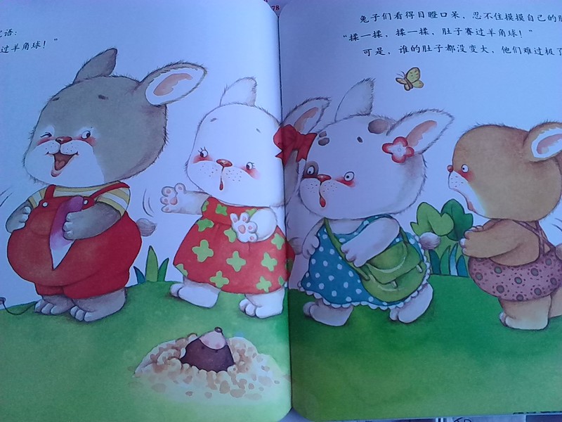 阅读心得:上次说白眼圈跟小兔子们炫耀,称自己有一个松紧带肚子,伙伴们都围着他,看是怎么回事呢。只见白眼圈拖着一小车的萝卜,不大会的工夫,红萝卜、白萝卜、青萝卜,带叶子的、不带叶子的,大的、小的。。。全都进了白眼圈的肚子。 噌噌噌,吃了这么多东西,白眼圈的肚子真的变大了,他还边吃边念起了咒语,小朋友们想学吗? 咒语是这样的:“拉一拉,拉一拉,肚子大得像西瓜!” 呀,好神奇,肚子真的变成了大西瓜!小兔子们惊呆了:“还能再大吗?”白眼圈骄傲的说:“当然可以,现在就像羊角球那么大!” 白眼圈继续吃,继续揉肚子,果然肚子变成了羊角球。 天哪,兔子们都看呆了,忍不住摸摸自己的肚子,学着白眼圈的样子念咒语,可是谁的肚子都没有像他那样变大。 白眼圈骄傲的挺着大肚子问大家是不是想跟他一样?所有的兔子都竖起了耳朵,想听他说秘诀。 那么白眼圈的秘诀是什么呢?大家是不是也想知道呢? 本作品未经作者许可不得转载,转载请征求作者意见。擅自转载使用,将保留追究其法律责任的权利! |