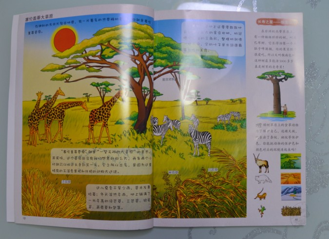 ![]() ![]() 我收到的这本书是《绕着地球跑一圈》之草原,这本书里面的有很多有趣的小动物,这些都是大卫宝宝比较喜欢的,他会坐在妈妈的腿上,指着图上的小动物问妈妈,这是什么,那是什么,还好上面的小动物们都有标注名字,不然妈妈真是要去百度一下,这些有趣的小动物们的学名叫什么了。 ![]() ![]() ![]() 草原和大海一样,都是大卫宝宝比较神往的地方,因为在妈妈的故事里面,大海和草原都是很美的地方,蓝蓝的天空,碧绿的大草原,一些很特别的树木和花草,还有很多有趣的小动物朋友。 ![]() ![]() ![]() 在这本书里,有能活5000多岁的老爷爷大树,有穿着监狱服的斑马大叔,还有脖子长长的长颈鹿大婶,前一段时间去西郊动物园玩的时候,大卫宝宝就见过斑马大叔的,对于这个长相奇怪,穿的衣服也很特别的大叔,大卫宝宝有很深刻的印象的,所以,一看到斑马,大卫宝宝就说一样一样的,原来是想起来之前的记忆了,看来一岁半的宝宝的记忆还是有一段时间的呢。 ![]() ![]() ![]() 草原犬鼠和响尾蛇是大卫宝宝第一次看见的,所以,他会指着他们问妈妈,这是什么,妈妈告诉宝宝这是蛇,一种很毒的蛇,他的舌头会吐出来,发出丝丝的声音,很多小动物都害怕它的呢,大卫宝宝就会睁大眼睛,也学着妈妈的样子,发出丝丝的声音,然后说:危险。这就是他的逻辑了,小动物们都害怕的就是危险的,有点意思了。 ![]() ![]() ![]() 看见考拉妈妈的背上有一只小考拉,大卫宝宝会指着背上的小考拉对妈妈说:宝宝。大的考拉说:妈妈。看来小家伙对于大和小有了一定的概念了,之前有看过一本小绘本,讲的就是关于妈妈的故事,大卫宝宝也是通过大小来区分妈妈和宝宝的。有些规则是放之四海而皆准的呢。 ![]() ![]() ![]() 喜欢的小动物,大卫宝宝会反复的去指着它摸着它,然后问妈妈它的名字,然后默默的记住,大卫宝宝现在已经知道上面的好几个没有见过的小动物的名字了,而且会指着对外婆说,他们是什么,因为外婆说她不知道,要大卫教给她。 对于一岁半的小朋友来说,对动物和植物的认知也许是最直接的,他还没有办法理解很多语言和文字的知识,但是他知道自然界有很多有趣的小动物,他们都是人类的好朋友,这些就足够了,幼儿的亲子阅读,体验的更多的是感性的认知的快乐。小小的他,对于动物小朋友们的认知和我们这些成年人一定是不一样的,因为他们的世界是更加的纯粹的,也更加的具体化的。 ![]()