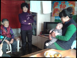 今天是小嘟嘟满一百天的日子,也是小嘟嘟太姥爷八十六岁的生日。一大早婆婆就准备好了一切,我们要带小嘟嘟去他太姥爷家。今天的天气还算可以,虽然没有太阳但温度却不低。八点半钟的时候老公的哥哥来了,给带了好多的苹果和地瓜,这些都是老公二姨家自己种的,绿色食品。八点四十的时候,老公的老姨父来了,我和婆婆坐老姨父的车走了,而老公则坐哥哥的车去给姥爷买生日蛋糕了。 ![]() 小家伙似乎只要要出门一样,没出门的时候在屋里就哭,出了门上了车以后,小家伙就停止了哭泣,反而跟大家聊天呢。经过了五十分钟的车程,终于要到姥姥家了。可就在快要到的时候,小家伙睡着了。到了以后,看见一屋子的人都在大门口等待小家伙的到来,谁也没想到小家伙居然睡着了,这人大家很失望。 ![]() 到了屋里之后,把小家伙放在了炕上,他睡了大概十多分钟的样子就醒来了。醒来的小家伙看屋子里全是人他就显得有点愣愣的,转个头来回的看。小家伙的这个举动逗得在场的人哈哈大笑。缓和了一会,大家就开始换着班的抱小家伙。等轮到了他姑姑抱时,小家伙哇的一声哭了,我可是哄了好一会儿才哄好的。 ![]() 看也看了,抱也抱了,大家就各自开始忙活去了。十一点的时候开饭了,给姥爷摆上了生日蛋糕,唱了生日快乐歌之后我们就正式开席了。我吃的比较快,十分钟搞定了,于是便哄小家伙睡觉了。十二点的时候,小家伙睡着了,我因为累了也跟着睡了。十二点二十五分的时候就听见有人叫我起来,原来是要回家了。