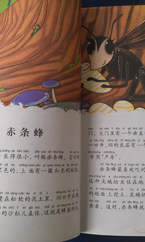 最近晚上除了背诵《三字经》,阅读报纸外,沐儿还喜欢看《昆虫记》了,每天晚上阅读两则小故事,呵呵,有动力才有阅读的压力,一点不假哦!舞蹈老师让孩子一周阅读一本课外书,孩子们积极性很高哦!跟着孩子一起探索小小的昆虫世界,也是一种特殊的心灵洗礼哦! 《赤条蜂》名字的由来源于它的体积很小,腰细肚黑,还挺可爱的。它不同与怕冷的泥水匠蜂,把巢穴建在暖和的锅和炉灶里,赤条蜂喜欢把巢穴建在松软的泥土中。它不但喜欢吃灰蛾的幼虫,还喜欢吃毛毛虫,那么大的毛毛虫竟然是赤条蜂的美餐,不可思议哦!赤条蜂获得战利品时,喜欢打滚儿和拍打翅膀,庆祝胜利的方式别具一格。沐儿说,它怎么和癞蛤蟆一样啊,高兴的时候喜欢哭,呵呵,昆虫的世界也是充满了乐趣哦!