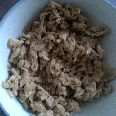 弄好的肉丝,看起来还有点成团,其实我基本上都用手撕过了。