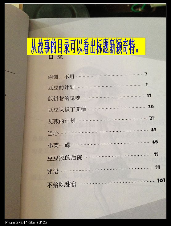 20131212《艾薇和豆豆》——小菜一碟 阅读日期: 12月12日 参与人员:妈妈和宝宝 阅读绘本:《艾薇和豆豆》 绘本特色:这本适合小学阶段的孩子。 适读年龄:6-12 阅读心得: 《艾薇和豆豆》讲的是两个女孩子交朋友并一起寻找快乐、共同成长的故事。昨天念了第六章,讲的是豆豆把艾薇打扮成“新款女巫”以后,就向豆豆家出发了,从艾薇家到豆豆家要穿过邻居们的后院,每个邻居都有不同的性格,真可谓“人间百态”啊,有友善的,也有不喜欢孩子的代表,但豆豆真的很聪明,她把每家每户的特性都捉摸透了,机灵地度过了每次“危机”,和艾薇一起来到了豆豆家。标题“小菜一碟”可能就是说孩子都很聪明,察言观色的本领都是天生的。 我们现在每天晚上都要讲《艾薇和豆豆》,一天一章,虽然没有《小小流浪汉》那么长,但是因为我最近都顾及彤彤的身体恢复,所以尽量不多读书,早睡觉早休息养身体,而且我也要求彤彤一定要给我读一本才行。 结果那个小家伙每天都找幼儿的教材来念,短得要命,我心里恨得痒痒的。