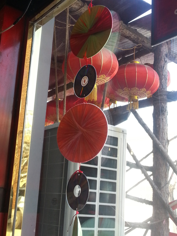 说起装饰,我插播一句,我发现店主应该是一个比较会生活的人,他店里的装饰物比较多,但是一点都不凌乱,各有特色,最吸引我的是窗子上挂的一件旧物改造,就是用光碟做的,怎么样,也很有感觉吧。