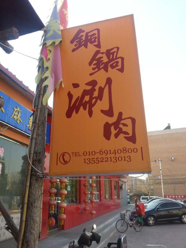 到了店门口一看,其实是一片很大的所在,店门前也有可以停车的空位,不错,很方便。店铺的装修风格也很有特色,“铜锅涮肉”的招牌高高耸立,店门口的装饰物个顶个的大,让人一看就倍感豪迈。