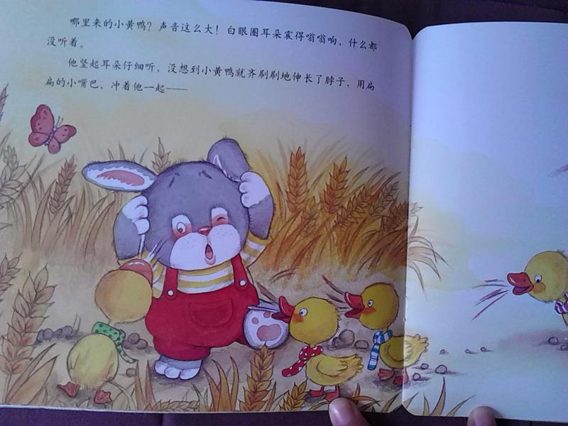 阅读心得:白眼圈被妈妈吼了,爷爷因为墨水弄得到处都是也没空理他,他赌气的走出家门。走着走着,就走到了麦地里。可是麦地里除了麦子还是麦子,一点儿也不好玩。 白眼圈正郁闷呢,一群小黄鸭从前面七嘴八舌的走过来了。他们好吵啊,白眼圈的耳朵被震得嗡嗡响却什么都没听着。他竖起耳朵想听清楚,没想到调皮的小黄鸭们却齐刷刷的伸长脖子,冲着他一起“嘎嘎嘎”的喊。 这下他听是听到了,可自己却被这巨大的声音给震晕了。 可怜的白眼圈!