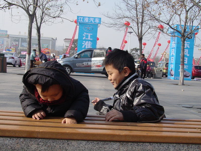 看到这广场边上的瓷砖,我想起来4年前带着阳阳来这里玩儿,两岁半的阳阳就说:“妈妈,你看这是不是小河啊,还有水波纹呢!”那个时候非常的佩服阳的想象力,现在阳再看到这片地面,就不会再想出那句话儿了!看来不同年龄段的孩子感兴趣的东西真的不一样,对于同样的一件事物,感触也是不一样的! 今天带着俩宝贝出来玩儿,天气不错,但是有一点儿风!不过哥俩玩的很开心!阳在认真的卡着广告宣传画儿,上面有一些自己认识的字!rain呢!自顾自的走正步,嘴巴里面还喊着:“一二一,一二一!” 非常的喜欢走正步哦,每天在家都和外公一起走正步!锻炼身体!这喊口号除了跟着外公学,还跟着哥哥的放学的队伍学的,喊:“一二,一二!”喊得特别的好,发音粉丝清晰! 哥哥用发的广告纸做了一根棍子,要和弟弟大战一场哦!小样,别以为你现在比弟弟高,等到几年以后,你要是不好好吃饭,你还湛蓝的不是弟弟的对手呢! 吼吼,被哥哥一棍子大众,毫无反击之力!哎呀呀,谁让俺是小孩子呢! 被欺负了,那我就自己玩儿吧!看看这长椅好奇怪啊,我来研究研究! 找打了什么啊,看rain扒拉的这么认真啊!不知道这椅子缝里面到底有什么宝贝! 弟弟在玩儿,哥哥趁机打弟弟的屁股,弟弟毫不在意!哼哼哼,你随便打,等到我个儿长得比你高的时候,看李还敢不敢欺负我了!哈哈,这俩玩的真是开心!广场上一片忙碌,哥俩也不消停,也在忙自己的事情!孩子有孩子的快乐,大人有大人的快乐! 本作品未经作者许可不得转载,转载请征求作者意见。擅自转载使用,将保留追究其法律责任的权利!
