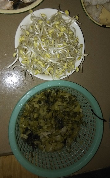 ![]() 说到吃鱼,我就开始有点流口水了,平时虽然我不太爱吃荤菜,对各种肉不太感兴趣,特别是动物内脏,我是碰都不会碰的,但说到吃鱼,我就会眼睛发亮了,鱼可是我的大爱呀,不管什么做法,只要是鱼,我就爱吃。人家都说喜欢吃鱼的人聪明,可我总感觉自己离聪明两字还差好一大截。 ![]() 今天宝爸买回来一条草鱼,而且买的时候还帮忙切成片了,其实现在吃鱼很方便,卖鱼的都会帮我们杀好,想吃鱼片就会帮忙切成鱼片,整条的红烧也照样帮你弄好,回家洗洗就完事了,如果要我自己去弄条活鱼,那还是算了吧,我还从来没杀过鱼呢,要自己杀我宁愿不吃。 ![]() 说得好听这鱼是宝爸做的,其实前期工作都是我准备的,比如洗鱼、腌鱼、配菜的洗和切,比煮鱼的时间远远多了去了。 ![]() 这条鱼具体多重我没问,但肯定有两斤左右,挺大的一盆,煮之前要放入调料先腌一下。 具体的调料:盐、酱油、料酒、生粉 (放入生粉可以让鱼的口感更鲜嫩,味道更好) ![]() 以下是配菜:豆芽、酸菜、香菜 ,配菜有时候不一定要放这些,可以根据自己的喜好来放,有时候我们也会放大白菜、粉丝、金针菇之类的,因为昨天晚上我们吃的火锅吃过这些配料,所以今天就改别的了。 ![]() 放入香菜味道更好,平时我也比较喜欢吃香菜,经常凉拌来吃。 ![]() 先放油烧红锅,再把辣椒、生姜、大蒜放入炒一下,然后放入酸菜再继续炒。 ![]() 加入清水,水烧开后,再把鱼和豆芽放入,煮得差不多了再放入盐、味精等调料,最后出锅之前放入香菜。 ![]() 香喷喷的酸菜鱼出锅了,因为今天炒了点花生米,宝爸心血来潮,出锅后往鱼里加了点花生米点缀了一下。味道很不错,一大锅全部吃光了。