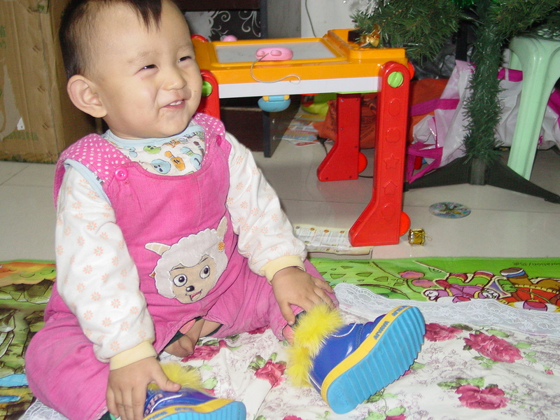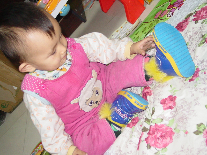 马上就要过年了,该给孩子们准备新年的衣服鞋子呢,不出门逛街,那就在网上为孩子选购一些吧,说实话,rain这么大了 这还是我为rain买的第一双鞋子呢,去年过年的时候,rain才4个月大,还不穿鞋子!后来长大了,别人送的鞋子都够rain穿的了,一直都没有买过鞋子,再说我也不喜欢给宝贝穿买的鞋子,总觉得买的鞋子不透气,容易臭脚!喜欢别人给的手工做的布鞋!可是今年rain会走路了,而且还有了自己的审美观,喜欢漂亮的衣服鞋子 每次穿上新衣服 总是很开心的样子,所以我就在众划算为宝贝买了这双鞋子,淘宝价67元,晒单以后,就返还34元,所以就是33元给宝贝买回了这双漂亮的鞋子! 看rain穿上以后高兴的样子,摸着鞋子舍不得脱下啦! “rain,你的新鞋子呢?”rain赶紧用手指一指鞋子!知道别人说的话儿!就是还不能准确的表达! 摸摸鞋底,还非常的柔软呢!宝贝刚学会走路,应该很舒服哦! 来看看我的新鞋子哦,我有新鞋子了! 鞋子里面是加绒的,很暖和哦! 鞋子的脚腕上有一圈黄色的毛毛,感觉非常的温暖! 哥哥喜欢蓝色,我也喜欢蓝色哦,好漂亮啊!看宝贝开心的笑个不停! 屋里哇啦的对别人说什么呢?哈哈,说自己的脚好温暖啊! 站起来走一走,试一试 是不是超极舒服哦!妈妈要收起来了,过年那一天再穿哦! 本作品未经作者许可不得转载,转载请征求作者意见。擅自转载使用,将保留追究其法律责任的权利!