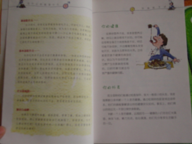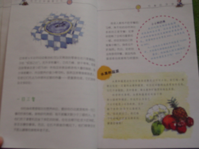 这套书的六本分别是《吃什么,你就是什么》《青春期“烦恼”攻略》《看上去很棒》《正在变化的身体》《想法和感受》《一起来运动吧》这六本书,每一本都值得我们当家长的先为孩子读一读,等到宝贝遇到类似的问题的时候再推荐给孩子去阅读! 先来介绍一下这本《吃什么你就是什么》吧,现在的孩子诱惑太多,不吃饭,不吃正餐,可以用美味的零食代替,不喝白开水可以用口感清爽的饮料来代替!所以对于饮食,当宝贝只相信自己的感觉而不在意营养的时候,这本书真的是我们的俺父母的说服孩子的最有力的的武器了! 先来看目录,从健康的饮食烽火,均衡的饮食,碳水化合物热量,蛋白质,生长素,脂肪类食物,纤维素,等等各种身体需要的,或者是不需要的这些东西来告诉孩子我们真正需要的营养是什么?顺便也来看看我们自己的身体!让我们保持健康的身体的健康的食物是什么呢?我们的这个时代的食品,哪一样才是最适合我们的?一起来看看! 一个人红光满面,神采飞扬,精力充沛,信心满满,他可以充分的享受生活富裕的而一切,这样的人才是健康的人,比一比,你是健康的人吗? 吃了什么东西就决定了你自己是什么样子!吃进肚子里面的每一样东西都会影响到你的而身体的机能和你的外貌,感知等等!每个人都会从食物中摄取我们需要的营养,可是我们的身体状况却因时而异!哺乳青少年时期,发之门的身体发育非常的快!所以对营养也有特殊的要求! 知道自己该吃什么,不该吃什么?什么时候吃东西,什么时候不该吃东西吗?宝贝,你的健康和你的营养息息相关,营养不良或者是营养过剩都会影响到你的身体!头发时候枯燥,皮肤是否光滑,这都是你健康的标志! 读了这本书,我们就可以掌握自己的命运!让你自己了解自己的身体说需要的东西,知道什么食物都自己的身体产生不同的影响!有这一本书在手,健康就不用愁了! 我们要维持营养均衡,我们应该每天的摄入各种各样的水果,蔬菜,今年吃一些低脂的乳制品,豆类,谷物坚果!但是有一些人需要摄入一些维生素,特别是素食主义者,他们更应该多多的试用豆类,种子类的食物来摄取足够的蛋白质! 一日三餐的均衡供应食物,是对身体营养的最好的补充!不吃早餐对身体的危害是非常的大的,启动你的消化系统的就是一顿营养的早餐哦!如果没有早餐,你就很难集中精力!身体也不听指挥! 我们的身体就像机器,如果没有热量也很难运转! 所以我们吃食物一定要营养均衡哦!不能够挑食,特别是处于青春期的宝贝,一定要乖乖吃饭,期待我家的宝贝长到15 16岁的时候能够依旧听妈妈的话,期待那个时候宝贝依旧喜欢吃妈妈做的饭,妈妈的厨艺变得超级好,让宝贝健康成长!拥有健康的体魄!非常棒的一套书,因为相机不给力,没有办法展示书的最好的一面,让大家看的辛苦了! 本作品未经作者许可不得转载,转载请征求作者意见。擅自转载使用,将保留追究其法律责任的权利!