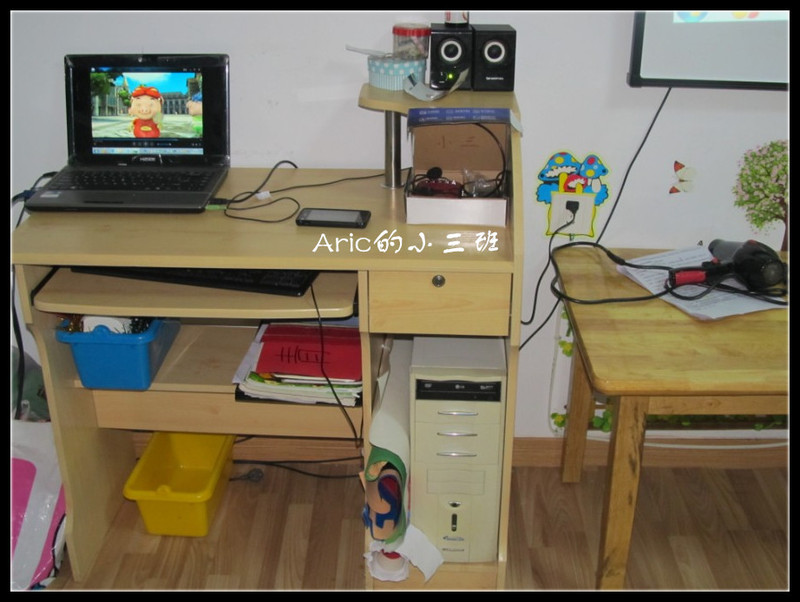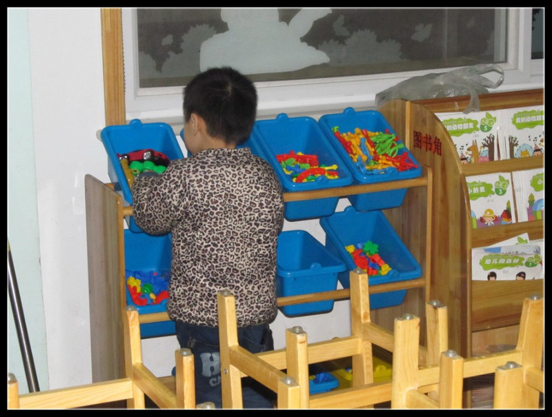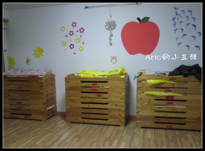 其实这么些时间了,我和Aric的老师也有些好朋友的感觉了,实际上她还没结婚呢,不过她对小朋友的耐心挺足的,而且人也很有趣,和我很谈得来,5点半她们要交班,所以她正忙着打扫卫生,我闲着没事做,就拿着相机乱拍,不得不承认,我现在可真成了拍客一族了,整天拿着相机拍照,哈哈。最后我来给大家介绍一下Aric的小三班: