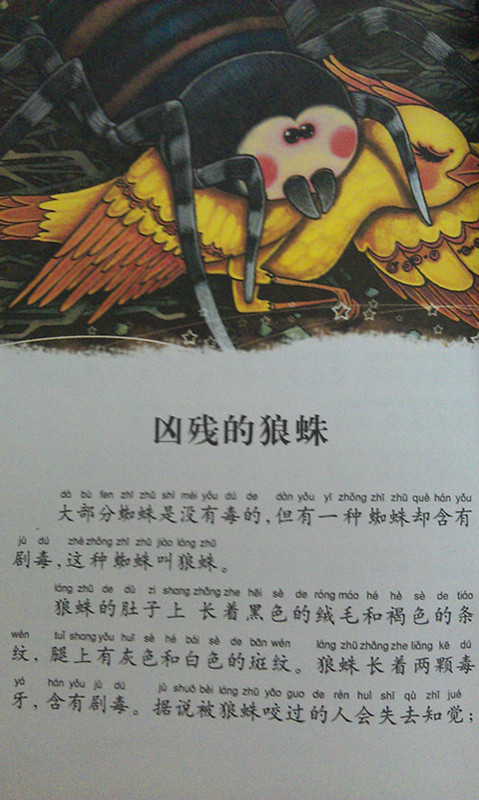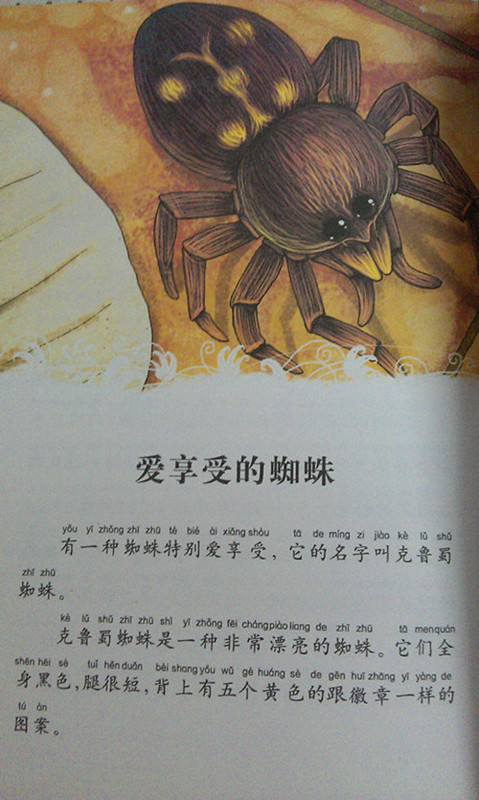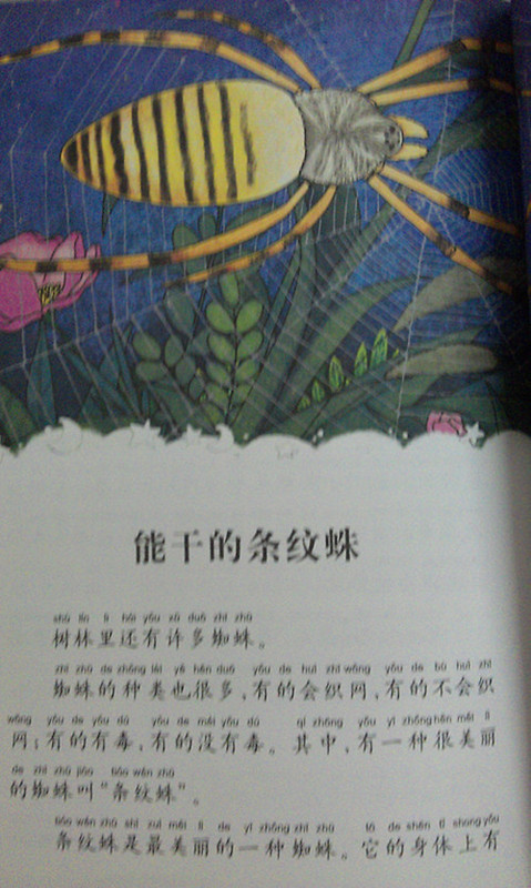 这几天生病的孩子特多,女儿也加入了这一行列,还好,没有去医院挂水什么的,就在家休息静养,利用这几天,把《昆虫记》剩余的章节全部看完了。 接着前几天的章节,这几天阅读的是关于蜘蛛的故事。 《能干的条纹蛛》 条纹蛛是蜘蛛中最美丽的蜘蛛,它的条纹分部匀称,颜色亮丽。条纹蛛不是漂亮的花瓶哦,它很能干,会织网,会捕猎,还会盖房子,很厉害吧!