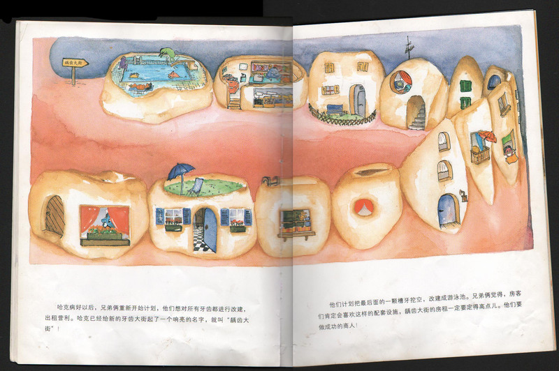 阅读日期: 12月26日 参与人员: 妈妈和宝宝 绘本特色: 德国精选科学图画书,给不爱护牙齿的小朋友敲响警钟! 适读年龄: 3-8岁 阅读心得: 德国绘本给我的印象一向对科学很严谨,没想到还有如此幽默的绘本。 《肚子里有个火车站》和《牙齿大街的新鲜事》这两本书都很好。现在跟我们一起去牙齿大街看看吧!瞧瞧有什么新鲜事发生。哈克和迪克两个野心勃勃的小家伙梦想着把牙齿大街改造成他们想要的模样。不仅修建自己的家,还想着修建能出租的豪华公寓……如果让它们继续下去,牙齿大街可就真的改造成了。(好恐怖!) ![]() 正在这时一把刷子带着“牙齿警察”从天而降,碎屑都被“牙齿警察”清理走了。哈克和迪克虽然所有的努力都白费了,不过他们还可以继续干活,直到腮帮子肿起来……危险的大钩子将他们的房间破坏了,哈克和迪克兄弟也被大钩子吊走了。哈克和迪克的命运将会怎样呢?那些警察是什么?牙齿应该成为住房吗? 书中的细节画得都很有意思:两兄弟的合影、可可可乐的水龙头…… 故事虽然有点长,但很有让人读下去的欲望,让人很想知道哈克和迪克最后的结果怎么样。出人意料的,结尾居然皆大欢喜,哈克和迪克也过着舒适悠闲的生活。 儿子的牙齿很不好,都怪我给他喝酸奶喝的,才3岁就看过牙医。我问儿子:“你想让哈克和迪克在你的牙齿大街里建造房间吗?”儿子捂着嘴巴:“不想不想!”我偷偷地笑了,看你还敢不认真刷牙!我得再找点本类书来看看,吓吓他!呵呵…… 本作品未经作者许可不得转载,转载请征求作者意见。擅自转载使用,将保留追究其法律责任的权利! 个性签名