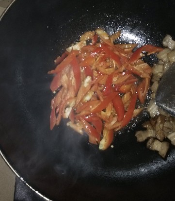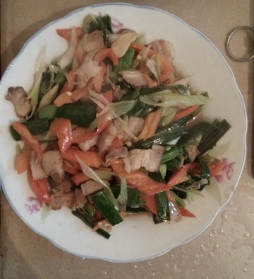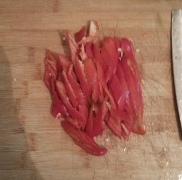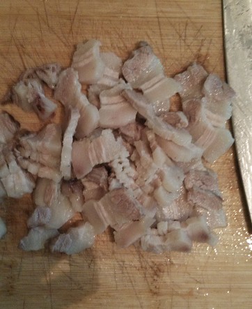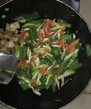 说到大蒜炒肉,其实以前我也经常做,只是以前经常选的肉大部份是瘦肉,因为本人不吃肥肉,今天的晚餐原本没打算做大蒜炒肉的,想做西红柿炒蛋的,可大宝说他不想吃,说想吃肉肉。我打开冰箱看到还有几根大蒜,另外还有一些比较偏肥的五花肉,就想着还是做大蒜炒肉吧。 ![]() 可是这次是五花肉,估计吃着会比较腻吧,突然想到妈妈以前告诉我,如果要炒五花肉的话最好先把肉焯一下,就是先过一下水,这样吃起来口感不会那么油腻,于是决定试一试,改改以往的直接炒的方法。 ![]() 先把肉在热水里煮一下,这样看起来是不是有点像整条都是肥肉,其实不是的,是五花肉,只是瘦肉看不太明显。 ![]() 然后切成薄片,这样小小的一块适合两宝吃,像我们在餐馆里吃的话估计会比我切的大块一些。这样一切,就能看得出是五花肉的。 ![]() 切好的大蒜 ![]() 切成条的红椒,是不辣的那种,更多时候我喜欢用青椒,今天家里没有不辣的青椒了,所以就改用红椒了,炒出来以后才发现,其实用红椒炒出来的看起来比青椒会更漂亮些。 ![]() 然后再把五花肉下锅炸一下,把油炸出来一点,会更香。 ![]() 洒上一些酱油调色 ![]() 再爆炒一下红椒 ![]() 把切好的大蒜倒入一起炒 ![]() 再放入调味料,盐、味精等,适当的加几滴水继续炒,直到炒熟为止。 ![]() 香喷喷的大蒜炒肉上桌了。 ![]() 今天的晚餐除了大蒜炒肉,还炒了个小豌豆炒肉,本来还要炒个青菜的,可是就在快要炒的时候,宝爸打来电话,说要和同事一起吃,不回来吃了。这样,我就把青菜省了,我和两宝还有表妹吃这两个菜足够了。我一直都喜欢菜够吃就好,不喜欢煮太多,也不喜欢吃剩菜。大家都很给力,说两个菜都好吃,吃了个精光。表妹也说这个大蒜炒肉的方法好,炒出来的肉特别好吃。听到这样的评语,我才更有下厨房的动力呀。呵呵。