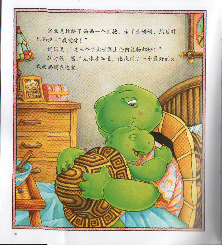 ![]() 阅读日期: 12月30日 参与人员: 妈妈和宝宝 绘本特色: 加拿大国宝级童书,教孩子学会表达爱! 适读年龄: 3-8岁 阅读心得:“小乌龟富兰克林”我们不陌生吧!前一段时间我们还非常荣幸地得到了《富兰克林的玩具弹簧爪》的试读。儿子从此喜欢上了“小乌龟富兰克林”的故事。 小乌龟富兰克林系列每册都有孩子有利于成长的秘密。故事涉及到了我们现实生活中的很多地方,平凡、简单却又不失知识性和教育意义。小乌龟可爱极了,书中各种传神的动物形象也很可爱。 小乌龟富兰克林有着世界上最好的妈妈。妈妈的生日就要到了,富兰克林打算送妈妈一个能让妈妈知道自己爱她的礼物。我问儿子:"什么礼物会让妈妈知道富兰克林爱她呢?"发现儿子的思想很有点懒啊!就会说:不知道。 富兰克林想不到应该送什么礼物,就去找朋友听建议。小熊他们给了富兰克林不同的都很棒的建议,可是这些建议富兰克林都不满意。终于妈妈生日的时候,富兰克林除了把朋友们给的建议都做了一遍,还给了妈妈一个拥抱,亲了亲妈妈,对妈妈说:“我爱你!”这是他自己的主意。妈妈非常感动。 这时,儿子也扑了上来,抱了抱我,亲了亲我,说:“我爱你。”我笑了,真有满足感呢!我回应儿子:“我也爱你。”这可真是给妈妈最好的礼物啦!我想起了我的妈妈:再也没有机会对她说,我爱你三个字了。 ![]()