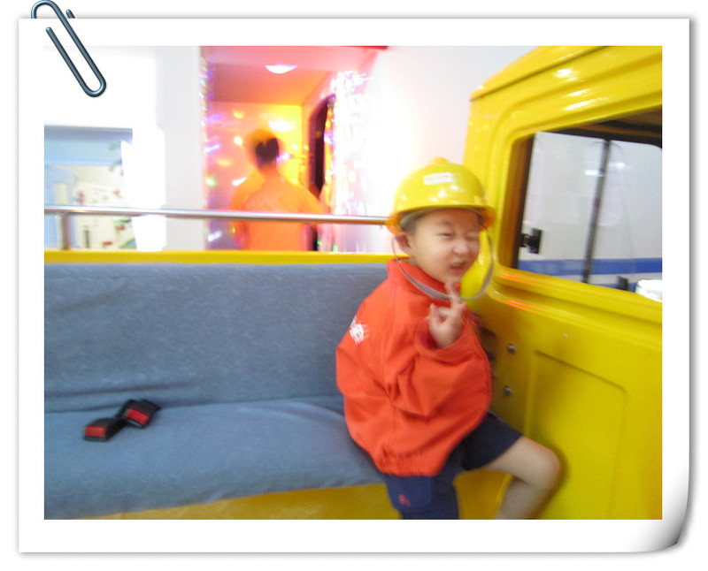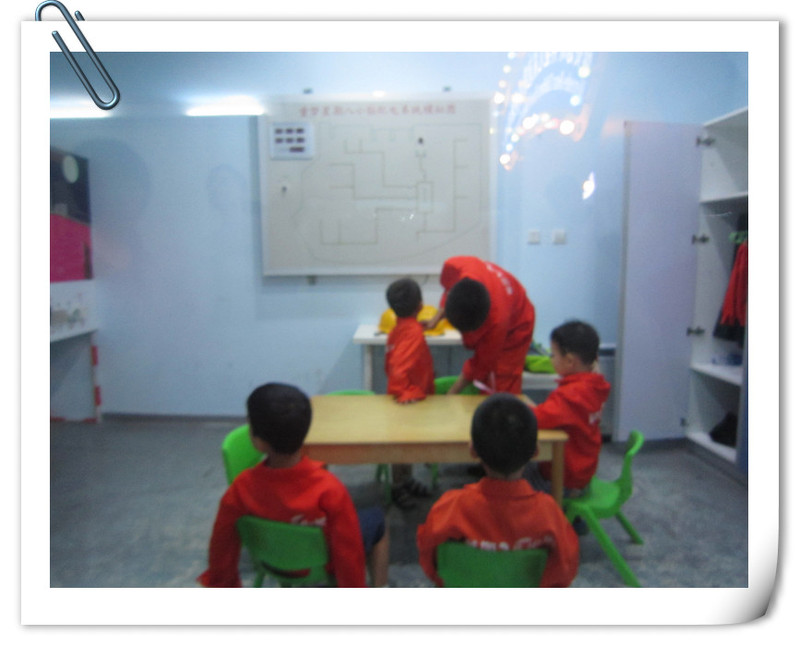 然后小朋友们坐上电力公司的车子回来了,换衣服,拿工资,盖章签,已经很熟练了。
