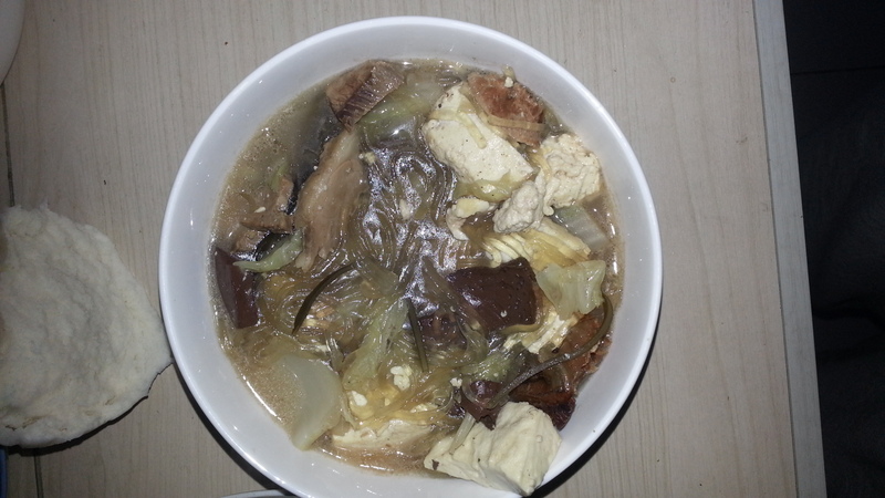 羊汤熬的差不多了,婆婆说去买豆腐,买了豆腐回来又说忘记买血豆腐了,呵呵反正出去好几趟,最后是忘记买烧饼了,我们去买的时候烧饼铺下午放假,没买成,只好换成馒头了。
