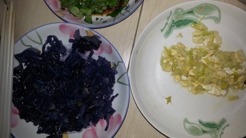 当天的光顾着吃忘记照相了,这是第二顿照的 炒了一个紫甘蓝,味道不错