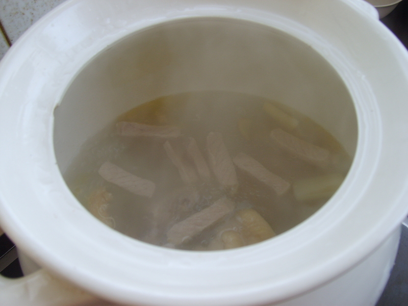 平时做的汤很多,比如说排骨汤、蛋花汤、萝卜汤等等但是做的最多的就是鸡汤,我觉得鸡汤是最有营养的,估计是因为自己在月子里喝鸡汤比较多的缘故吧,很喜欢喝。 煲汤的容器我觉得用砂锅最好了,因为可以小火慢慢的熬,本来啊,做汤就是要经过慢火的一个熬煮的过程,才更加的美味,更有营养。我家里主要就是用砂锅来做汤,煮粥也是用砂锅的。 做鸡汤的配料可以放很多的东西,我最喜欢放的就是蘑菇类,香菇、鸡腿菇、猴头菇、海香菇等等,今天放的是杏鲍菇,这个蘑菇很有营养的哦。 做法:把杏鲍菇切片,然后用水焯一下,鸡腿也是用水焯一下,五花肉只用瘦肉的部分为好,焯一下,切成条状;接着就是把这些材料放入砂锅中,加入葱姜蒜这些基本的调料,不用放一点油哦,因为本身鸡腿就是会有油的。之后就是用大火先烧开,然后小火慢慢的熬就可以了。 杏鲍菇就是这个样子的! 焯过水的鸡腿 所有的材料 焯过水的杏鲍菇 用小火慢慢的熬 看到鸡油了吗?其实我可是一滴油都没有放的,鸡汤就是这一点特别的好,差不多出锅了,再放上适量的盐即可,盐一定要少吃哦。 出锅的时候,在碗里放上葱末、香菜,这样比较的调味道,当然也可以放上一点香油 就这样,简单美味的杏鲍菇鸡腿汤就做好了,清淡还很美味的哦 本作品未经作者许可不得转载,转载请征求作者意见。擅自转载使用,将保留追究其法律责任的权利! 评分记录