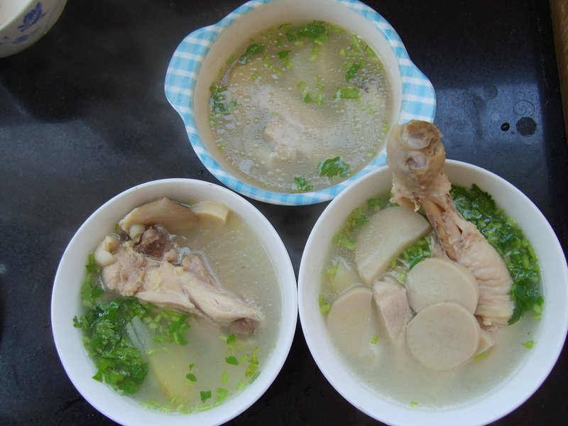好大的一个鸡腿哦,这个汤很清淡很美味.