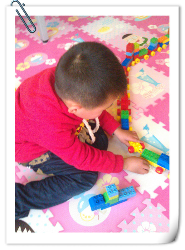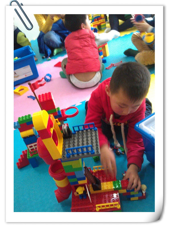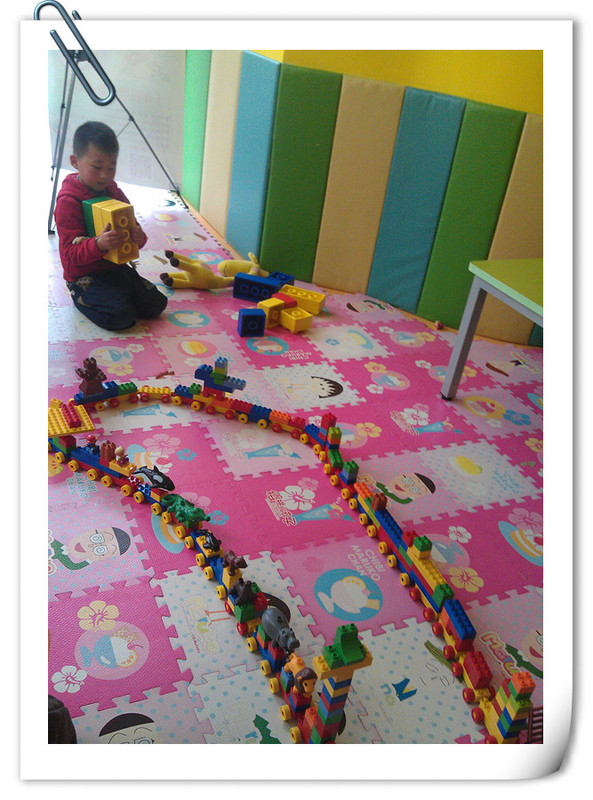 下课后点点就去活动区域玩积木,这一次点点搭了一个长长的火车,这个火车真长啊,可以乘着火车回家了,还给火车建一个加油站,还在火车上面放了很多小动物,点点说,这个火车就是运输小动物的,把非洲的小动物运到我们这里来,点点和他的同学在活动区域玩了一个小时才肯回家。