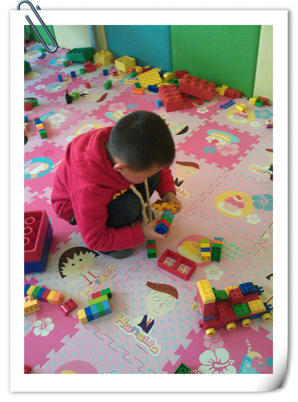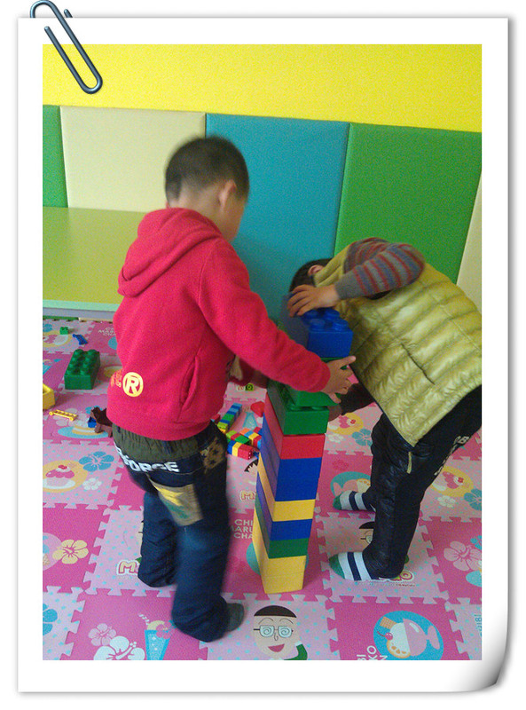 妈妈在窗户外面看见点点搭的积木和上次的有点相似,用了管道,也和发射塔那次有点类似,不知道搭了什么东西,看起来还是挺不错的。点点搭积木还是很专注的,我在窗户外面看,也没有注意到妈妈在看他,注意力很集中,说明点点上课还是很认真的,也很喜欢搭积木。