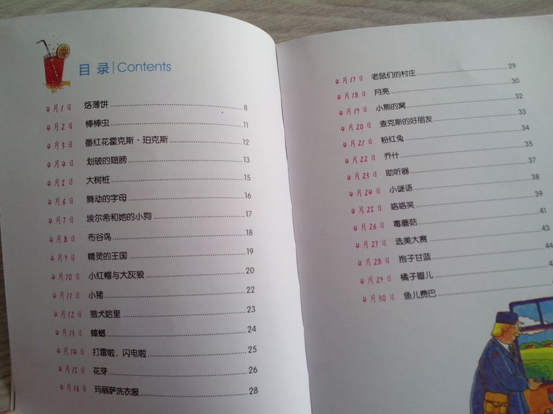 确切地说这应该算是本准日记,不能算是真正的日记,只不过写作的形式是以日记的形式来记录的,而里面的内容有的还是以故事为主的,这是宝贝看后自己总结出来的,有时候自己边看边说:“这哪是日记啊,分明就是一个个小故事嘛!”呵呵。这么说来她是看懂了。 不过这本书确实挺不错的,说它不错,是因为每一篇的篇幅正合适果这个年龄阅读,不短也不长,虽然对她来讲会有些生字,但她可以结合上下文的意思来猜,篇幅的适中让她阅读的时候不至于有累的感觉,一篇篇读下去还津津有味的,看来是乐在其中了。 好了,还是赶紧来说说书的内容吧,整本书是以4月整个月来记述的,4月一共30天,那么就有30篇的小故事了,这种日记体的形式一个好处就是在春来秋往、四季更替中,孩子们可以伴随着故事的主角们一起体验生活、感悟生活,故事中主角的喜怒哀乐与欢声笑语,阅读的孩子们都能感同身受,日记体的形式,给人以更加真实的感觉,小读者们更容易感受到故事的亲和力,看到一个广阔的、别样的新世界。在这套书中,图画是阅读的向导,画中柔和的色调、线条和光亮,让读者赏心悦目。 书中的那些小动物,它们的故事让 孩子们有了感同身受的喜悦和悲伤,那些精灵和玩偶,小兔和小猴,会让我仌感受到幽默的智慧,满足了孩子们的好奇心,还有那些丰富大胆的想象力,很契合孩子们的天性,充满温情的故事,更让我们跟着动情。 当然,书中也有记录日常生活的片断,这对于果来看象是日记了,让人读起来也感受到了家庭的温暖和亲情,感觉很好!象《烙薄饼》这篇小日记,就记录了家庭成员一起互动烙薄饼的故事,平时妈妈都是家庭主妇,做饭的活理所当然是妈妈的主角,但爸爸偶尔也会展示一下自己的“风采”,虽然有时候展示得不是那么很到位,但从中看到了爸爸妈妈之间的亲爱,也感受到了一家人其乐融融生活的味道,爸爸烙薄饼的技术虽然生疏,偶尔可能关键时候还会掉链子,但一个这样充满幽默感的家庭氛围肯定是孩子喜欢的,孩子的感受可能和大人的不同,大人觉得好的孩子可能不会这样感觉,最后孩子还是觉得爸爸烙的薄饼好吃呢,多么温馨的一家人啊! 还有一篇《舞动的字母》也挺吸引小朋友眼光的,把字母和数字都采用拟人化来写出来,让孩子们既觉得新鲜好玩儿,而且还从中学到了知识,篇幅很短,让孩子们读起来很轻松,不会有累的感觉。象这样的小故事好多好多,够果看一阵子了。希望果能从这一个个小故事中学到一些小知识,开阔自己的眼界! 总之,是一本不错的书,值得孩子们去阅读欣赏。有图有真相,现在看看书的一些具体的样子吧。 ![]() 这是目录,一共30篇! ![]() 一个个小故事都很精彩哦! ![]() ![]() ![]() ![]() ![]() ![]() 本作品未经作者许可不得转载,转载请征求作者意见。擅自转载使用,将保留追究其法律责任的权利! 个性签名
