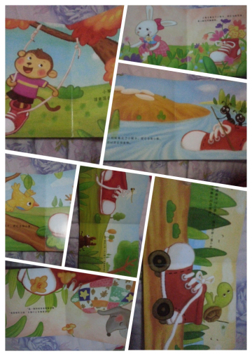 《摇篮鞋》是竹兜快乐家庭早教系列中的一本。这本书的质量超级好,是那种非常硬的纸板做的,加上封面和封底一共九页,页数不多,适合小孩子阅读。 最为巧妙的是封面被设计成了可以系鞋带的小鞋子,更增加了本书的趣味性。(原来是有一根黄颜色的鞋带的,被谦谦解掉了,呵呵) 故事的内容非常富有童趣,讲的是小动物们发现草地上有一只红颜色的小鞋子,会是谁的呢?小动物们觉得很奇怪。小蚂蚁看到了,就把它当做小船,划着划着就到了对岸,去寻找食物了;小老鼠看到了,把它当做摇篮,躺在里面美美地睡上一觉;小乌龟看到了小鞋子,把它当做一辆小车,嘟嘟嘟地开着去见好朋友,小兔子看到了,把它当做花篮,栽上鲜花可漂亮了,小鸟用它做了个窝,里面孵出了小鸟,小猴子呢,用鞋带做了个秋千,高高兴兴地荡起来啦。。。 一只简单的小鞋子,竟然有这么多的用处呢,我顺势问了问孩子,还有哪些小动物捡到鞋子了呢?谦谦说小蜗牛捡到了鞋子,把它当成小车了…… 这本书用孩子们喜欢的小动物贯穿全程,宝宝们的阅读兴趣更高啦,而且每个想法都特别的独特,非常的有创意。还可以作为延伸,然孩子自己考虑还有谁捡到了它,把它当做什么,可以锻炼宝宝的想象能力呢。