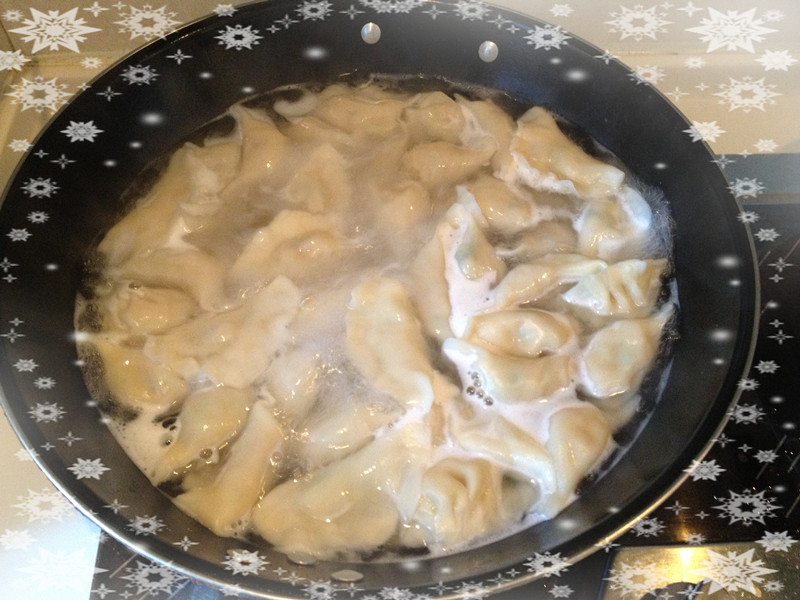 我们边包着饺子,公公就负责开始煮了,可谓包和吃两不误。一大锅的饺子,很诱人吧?