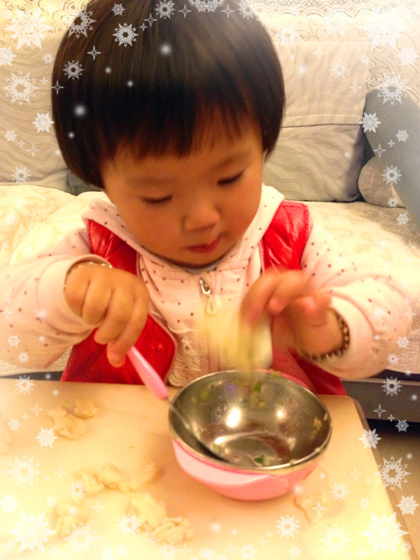 因为桐桐,我成为了妈妈, 因为桐桐,我需要更多地把自己的时间都用在她的身上, 因为桐桐,我的所有生活都需要围绕着她而让自己有更多的喜怒哀乐。 前段时间一向身强体壮的桐桐生病了,持续时间头尾差不多一个月时间。从最初的流鼻涕打喷嚏到咳嗽,之间她用自己身体的抵抗力跟病毒抗争很辛苦,我们照顾她的人也是不得放松。讲起来很多人都不相信,家里四个大人照顾这么一个小妞儿,本来应该绰绰有余的,可是事实上却是每个人都筋疲力尽。 本来三代人住在一起总是会有各种矛盾的,婆媳矛盾貌似在我家不存在,倒是公媳矛盾。讲起来很奇怪的感觉,估计这也是全世界少有的吧。因为我和公公的性格比较相近,都是很好强、很急性子的人,所以他的很多做法我会很不认同,当然我的很多做法他可能也会很不认同。而我也深知老公和婆婆夹在中间挺难的。所以借着地带的这个“暖冬私房菜”活动,我想用我这有心计的活动来缓和这紧张的家庭关系,只要大家都心情欢快了,这个冬天就不会寒冷。 说我的这道“暖冬私房菜”别有心计,一点儿都不假。是我想了很久之后,可以全家总动员的一道菜。因为公婆他们都很喜欢吃面食,而桐桐也是超爱饺子,所以这个“别具匠心”的“暖冬私房菜”一定就定下它了——自制饺子。