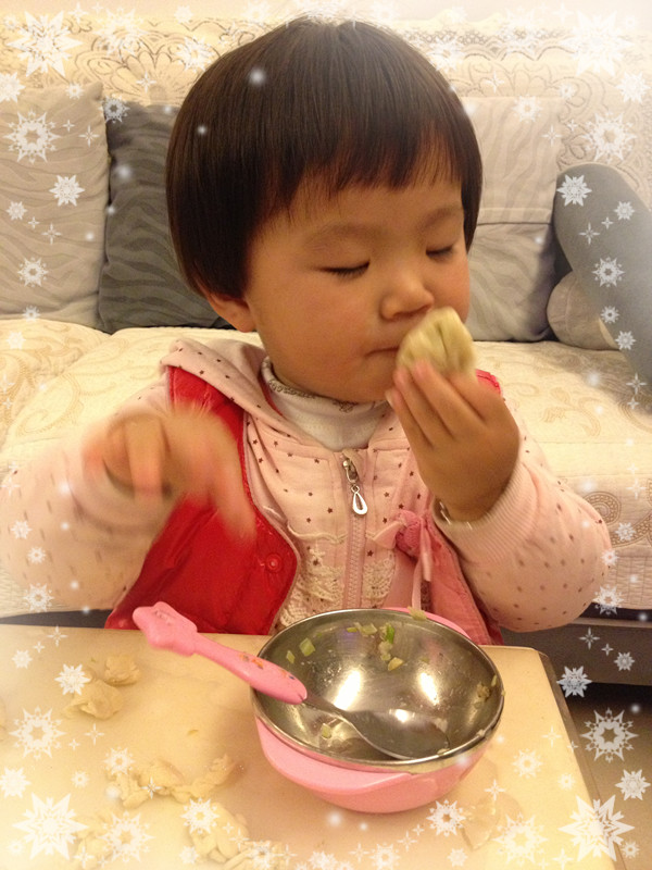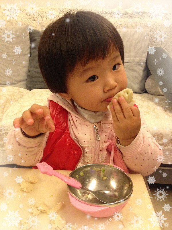 夫妻合作,好棒的饺子啊,宝贝吃的好可爱呢 是不是充满了浓浓的情意呢?