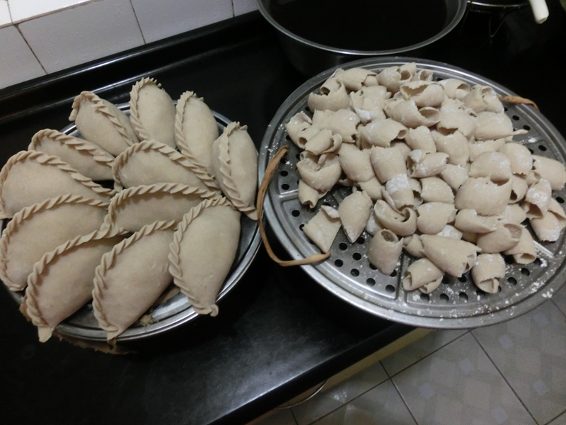 ![]() 老家又寄来莜面了,于是今天下午婆婆就做了莜面制品给我们吃。一进厨房就看到了婆婆精心制作的漂亮的面食。婆婆是做面食的好手,做得一手的好面食。以前我只会包饺子、包包子、包汤圆,现在看来,原来面分为好几种,制作起来也都有各自的讲究。 ![]() 这些都是用莜面制作而成的。莜面的制作方法有很多,今天制作的是攒皮和夹夹。听婆婆说攒皮是自己吃的,如果来了客人会做另一种比这个更整齐摆放漂亮的造型。右边的攒皮是一个一个放在膀子上摸的~~左边的是夹夹~~里面包的馅也是莜面~~感觉夹夹非常的漂亮~~ ![]() 这些都是婆婆老家寄来的莜面,感觉非常的好~~我们这里没有卖的~~听说老家也只能到乡下才能买到这么好的莜面。 ![]() 这是夹夹的造型,包成了整整齐齐的太阳花~~婆婆制作各种面食的手艺是一流的!~~ ![]() ![]() 我看到漂亮的莜面就想拍照,结果发现煮熟了确实颜色并不理想。不过并不影响食用。感觉莜面是一种特别奇怪的面。制作的夹夹虽然里里外外都是莜面,但是吃起来感觉却不一样。这夹夹外面的那层皮是非常劲道的~~很Q很弹,而里面的莜面馅却非常的酥。听婆婆说,这虽然是老家的莜面,但是用了这边的水和的面包出来的馅,口感还是和老家的有一些不一样。 用老家的水和出来的馅口感不仅酥而且脆,但是这个夹夹里的馅的水分略显多了一些。 ![]() 攒皮当然是非常劲道的。莜面对于调料也非常有讲究。今天,我们做了个实验:把莜面攒皮放进凉拌调料中,莜面吃起来非常的劲道;而放进荤汤里莜面却马上就化掉了,变得软软的~~感觉真是神奇的一种食材~~