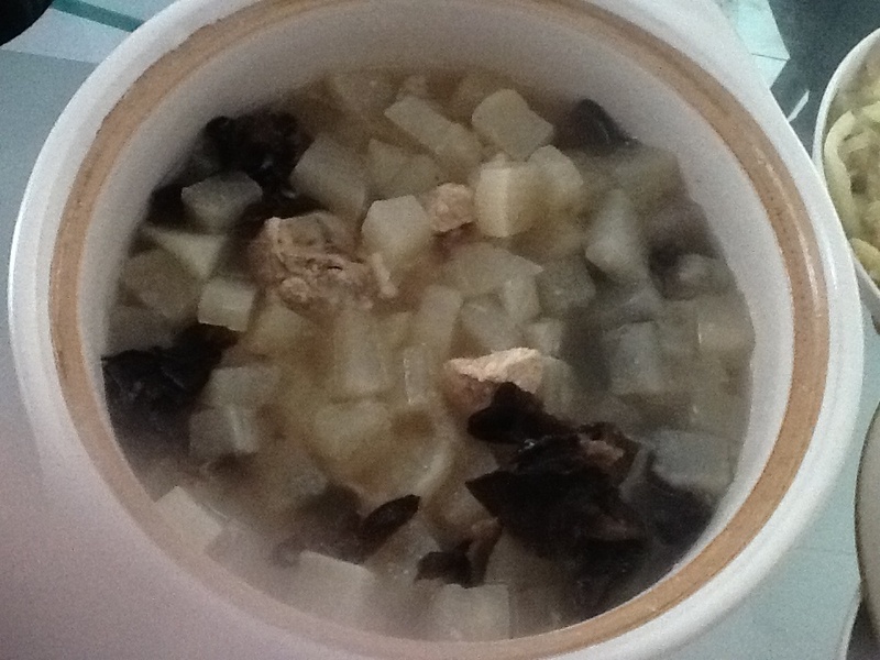 貌似萝卜切得很小粒吧,我们这煲这个没有加木耳在里面