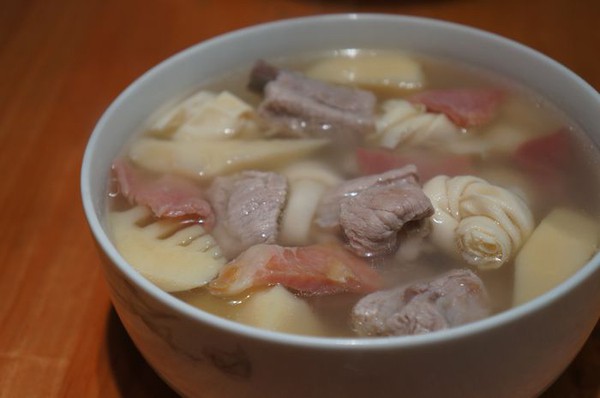 ![]() 这个名字也很特别叫“一笃鲜”那还是很后来,我在一家本帮餐厅点菜时才知道的,原来只知道沪语的念法,都不知道普通话这个汤怎么说。 先来说说它的配料,非常简单:竹笋、火腿肉、鲜肉,百叶结就可以了。配料因为有火腿的提味,连盐都不需要。更别说味精了。 一笃鲜,名字中的“笃”字取自沪语中的“炖”的意思,就是要用火腿肉和竹笋多炖慢慢的让火腿肉的咸和竹笋的鲜两者揉合在一起。在加上鲜肉吃起来大快朵颐和百叶结吸收汤中的精华,那是相当的可口暖心。一笃鲜中的“鲜”字就是这么来的。 上海人什么时候吃一笃鲜? 以前因为春笋上市晚,一般上海人过年家庭团圆时候才会烧一笃鲜。 本作品未经作者许可不得转载,转载请征求作者意见。擅自转载使用,将保留追究其法律责任的权利! 评分记录