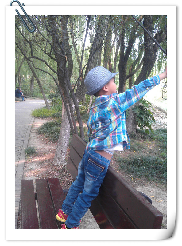 这一次点点外景拍照完全就是来玩的,拍第二套衣服的时候,点点就只知道玩水了,到了河边玩水,那么危险,然后就让他不要去河边,又去爬树了,看来爬树爬上瘾了,然后就是爬椅子,爬上爬下,只能是摄影师抓拍镜头了,总算第二套衣服拍好了,那样就可以拍第三套衣服了。