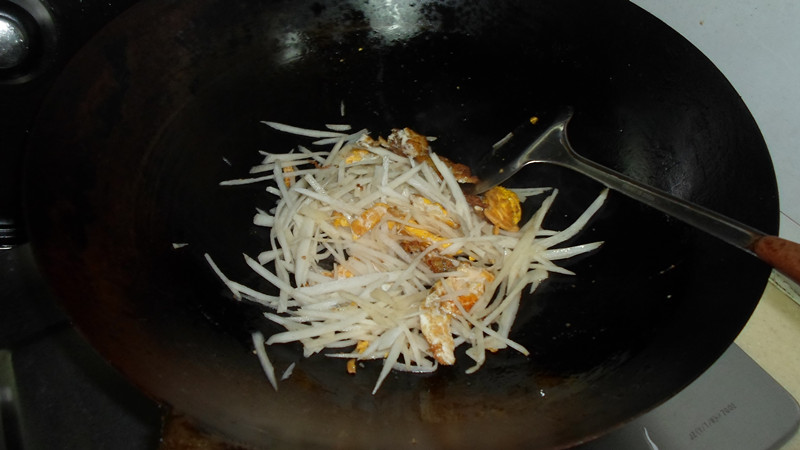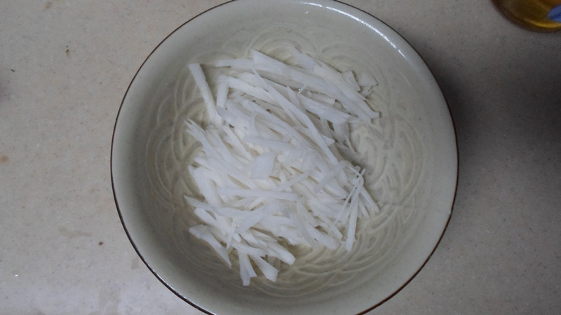 ![]() 俗话都说:“冬吃萝卜,夏吃姜,不劳医生开药方!”流传下来的俗话既然这样说,就有一定的道理。上次在中央台的一套节目上看到,冬天吃萝卜确实是挺有好处的,李时珍在《本草纲目》中提到:萝卜能“大下气、消谷和中、去邪热气“,再加上冬天一般会进食一些肉类,然后吃点萝卜就刚好可以中和一下,所以就推荐冬天多吃萝卜了。 在我们家,好像萝卜还是挺喜欢吃的,每年坨奶奶都会自己种白萝卜,所以我们每年都能吃到自家种的绿色食品萝卜,味道真的很好,不仅多汁,而且感觉特别甜,上次也是在坨奶奶家拿了一些萝卜过来,这次就来个萝卜丝鸡蛋汤吧!做法很方便的,而且味道挺鲜美的,特别适合在冬天食用。 下面来看制作方法吧! 萝卜洗干净后削皮切丝,我用了三分之一个的份量,因为只有我和两个小家伙吃,坨爸没在家吃饭。 ![]() 鸡蛋两个,鸡蛋也是从坨奶奶家里拿过来的自家鸡生的蛋,这两个鸡蛋的差别竟然有这么大,呵呵! ![]() 锅里热油后打入鸡蛋,像煎荷包蛋一样的。 ![]() 另外一个也打入煎熟。 ![]() 煎熟后把鸡蛋切成条块状。 ![]() 加入萝卜丝。 ![]() 翻炒几下。 ![]() 加入水盖过原料。 ![]() 煮开后就能看到白色很浓的汤了。 ![]() 煮到萝卜丝熟了加入盐调料就可行了。 ![]() 加入香菜调下色,也提下味。 ![]() 成品出锅!特别的简单。 ![]() 我个人是挺喜欢喝这个汤的,而且做起来也特别容易,没什么窍门,再加上冬天适合吃萝卜,所以这个菜会是我们家餐桌上的常菜! 完 本作品未经作者许可不得转载,转载请征求作者意见。擅自转载使用,将保留追究其法律责任的权利! 评分记录
