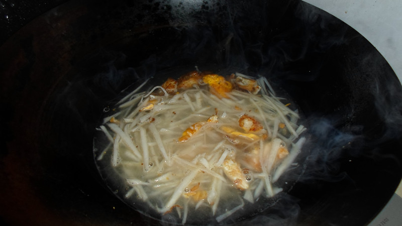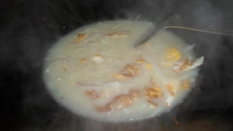 原来是先炒熟了再熬汤,我平时都是直接把蛋散打在汤里的