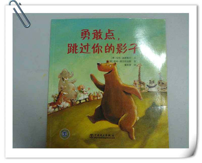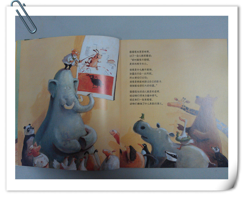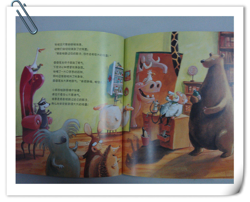 这本书五彩缤纷,颜色鲜艳,语言浅显易懂,而且很有韵味,故事内容很适合小朋友,这些小动物就是我们小朋友的写照,活泼的语言吸引孩子的眼球,读了这本书,不仅感受到了小动物们的勇敢,得到了很多的乐趣,也让孩子自己学会鼓起勇气,克服困难。