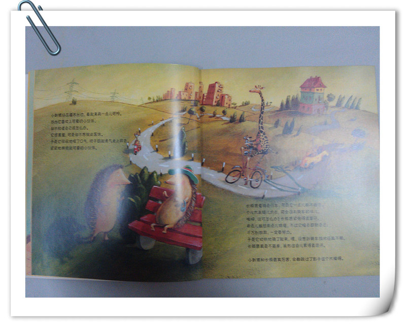小刺猬鼓起勇气和自己的小伙伴拥抱在一起了,长颈鹿鼓励自己不放弃学会骑自行车。