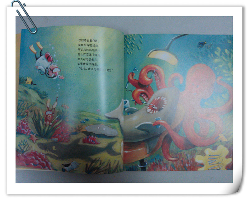 鲨鱼敢去看牙医了,章鱼先生在给鲨鱼补牙。
