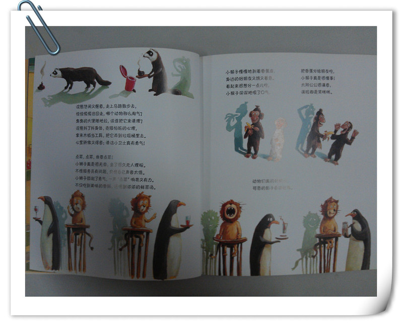 浣熊自己清理自己的便便,狮子学会了点餐小猴子学会了分享香蕉,动物们开心极了。