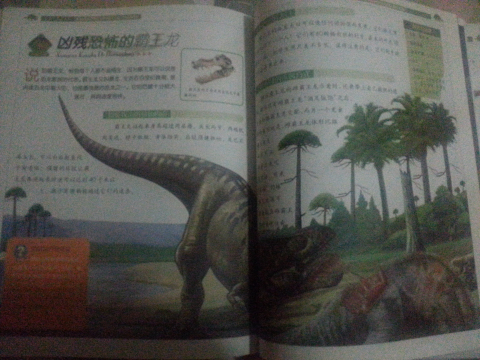 以前在看蒲蒲兰的《我永远爱你》中就提到过霸王龙,锋利的爪子,尖尖的牙齿,疙疙瘩瘩的皮肤……今天通过看恐龙王国大百科更加深了对它印象。