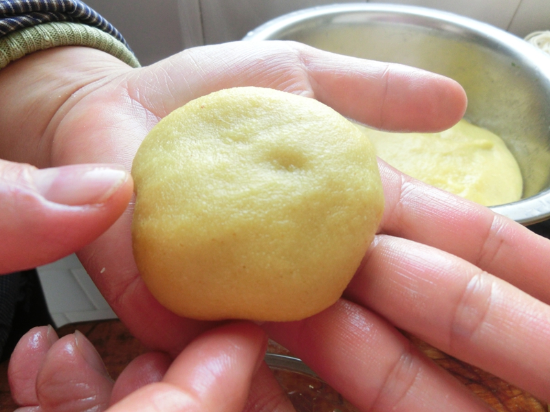 ![]() 前段时间老家邮来了糕面,于是可以做黏米糕吃了~~在婆婆老家,这种糕一般都在重大节日或纪念日的时候吃,所以一年之中也吃不到几次。每年过春节的时候都少不了,也可能因为快要过年了,所以老家就寄来了这种糕面,是黄糯米面。这次的糕面特别好,因为特别筋道!~~前几天婆婆过生日,所以我们就又做了这种糕~~ ![]() 其实,很早就想分享这种粘糕了,只是因为食材的原因,所以一直没有分享。今天就来分享给大家看看好了。这种面在做年糕的时候是要先放在锅上蒸的,只有蒸熟了以后再踩糕~~这可是一门手艺活,因为这种糕从踩到包都非常的烫手。所以到了夏天就很少做糕了。将蒸锅放在炉子上蒸一段时间,然后拿出来放在板子上快速的压糕,还要确保压的很劲道才行~~而且这种糕面很特别,只要冷了就会失去弹性,到时候就不好包糕了~~~ ![]() 因为压糕的步骤是最难的,而且非常有讲究,所以是婆婆一手完成的。当时我在带孩子结果没有拍照,直接从包糕开始吧: 其实,包糕也非常有讲究,而且黄黏米糕的糕面也有好有坏,这次这一带糕面是从乡下买来的,所以特别劲道,用手拽了一块准备包糕,结果可以将它拉好长也不断开。这种糕面在糕包好了以后吃起来也非常的黏,属于上等食材了~ ![]() 除了糕面以外还要准备好包糕用到的馅,我们用的馅很简单,就是红糖和芝麻粉。然后用红色的小勺子添进糕里就可以了。除此之外还要在板子上撒上一层薄薄的碱粉,手上也必须沾上一些碱粉,因为糕面太黏了,只有加了碱粉才能保证不沾手。不过碱粉不能多,只要沾一点点就可以,否则味道会变苦~~ ![]() 接下来的步骤就是包糕了!~~把上面的糕馅用勺子添到糕里,其实步骤和包汤圆有一点儿类似,不同的是,等包好了以后要拍扁,这样方便下一步。特别要注意:包糕的时候一定要注意速度。否则糕面冷了就没有粘度了,就不能再添馅了!~~~糕面当然也可以包成不同形状的,大小也依个人喜好来定~~ ![]() 包成形的黏米糕黄盏盏的非常好看,其实,这样的糕也是可以直接吃的(糕面已经蒸熟了),但是这只是半成品,还要经过下一步上桌呢!~~~ ![]() ![]() 那就是—— 将刚刚包好的糕放在锅里炸!~~~ ![]() 炸的外皮脆脆的,然后盛出来就可以上桌喽!~~~~ ![]() 这种糕看上去黄灿灿的,吃起来外皮酥酥脆脆,而里面又是黏黏的,还带着黄黏米面那种特有的味道,非常好吃!~~~可比炸元宵好吃多啦!~~~~ 不过,一定要记得趁热吃哦!~~~