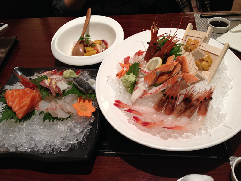 接着,刺身拼盘把日式刺身的经典都囊或其中了。肥美的三文鱼,鲜滑肉感的鲷鱼,还有新鲜的八爪鱼肉,以及青花鱼。使我们的味蕾完全打开。