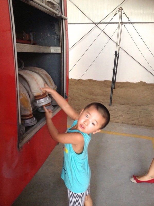 豆豆每天都要看会消防员山姆这个动画片,百看不厌,还有不管他在做什么,只要电视上出现了消防员的影子,都要停下来看,看着他特别崇拜消防员,就想着带豆豆去参观下消防队,圆下孩子的梦。正好豆豆小姨的同学在消防队上班,就和人家约好让人家带我们去消参观。