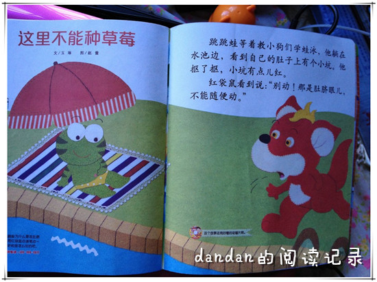 ![]() 阅读日期:1月17日 参与人员:妈妈和宝宝 阅读绘本:《婴儿画报:这里不能种草莓》 绘本特色:好习惯培养 适合年龄:2~4 阅读心得: 跳跳蛙作为一个游泳教练,在游泳上有很令人学习的地方。 不过呢,他也会做傻事哦! 这个故事说的就是跳跳蛙的一个小傻事。 有一天,跳跳蛙在泳池边等着小狗们学游泳,他看到自己的肚子上有一个小坑,于是抠了抠,小坑变红了。 红袋鼠看到说,不能抠,那个是肚脐眼,是不能乱抠的。 跳跳蛙不管,还继续,甚至还往肚脐眼里撒了水,边洒水边说,我要在这小坑里种草莓。 没多久,跳跳蛙的肚脐眼就生病了,又痒又痛的,惹得跳跳蛙连游泳课都没法上啦! 小朋友总是对自己身上的各个零部件感到十分的好奇,事实上这也是很正常的。 刚认识世界总是充满了好奇,对于自己身上有的又能够摸得到东西,总感觉特别新奇。 于是乱抠乱捅总会难免发生。 这个小故事就是告诉小朋友们不能对自己的肚脐眼儿乱抠,因为这是连接人体的一个很重要的穴位。 一旦乱抠会有可能生病的。 本作品未经作者许可不得转载,转载请征求作者意见。擅自转载使用,将保留追究其法律责任的权利! 个性签名