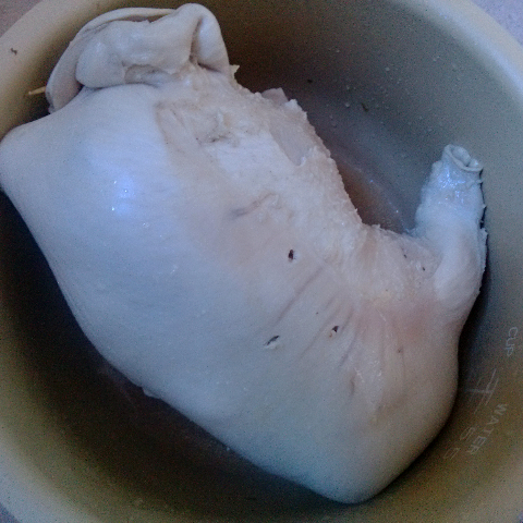 ![]() 老公的生日已经过去十多天了,但那天我还记得非常清楚,特别是我忙了一天准备的好吃的。 趁着回家过年前,赶紧来晒一晒吧!哈哈,不好意思,让各位久等了。 ![]() ![]() ![]() ![]() 老公生日,我没什么礼物可以给送他,就想吃一餐好吃的算了。 那天本来想买材料打火锅的,但去到超市,买看到有多少适合打火锅的东西,而且也都比较贵。 所以我转为第二个方案,做个猪肚包鸡。 这道菜是我非常喜欢吃的,又有暖暖的汤喝,又有好吃的鸡肉和猪肚,可以大饱口福呢! 不过由于做起来比较费时费劲,所以一年最多也只吃两三次而已。 今年貌似还没吃过呢。 虽然是老公生日,做道我自己喜欢吃的也是理所当然的,嘿嘿! ![]() ![]() ![]() ![]() 正好超市的最后一个猪肚给我买下了,又去菜市场买了只鸡,两斤多的鸡。 回家后,虽然是上午,但我已经开始为晚餐做准备了。 先把猪肚反复洗干净,我加了起盐、生粉、油等一起去搓洗。 然后把鸡洗干净,在鸡的肚子里放入姜片和葱段。 在猪肚里抹上敲碎的白胡椒,大概要三十粒的白胡椒,具体也看个人喜欢的辣的程度来衡量这个量。 再把整只鸡塞进猪肚里面,然后用两条牙签把猪肚收口。 ![]() 看,这个就是包好鸡的猪肚,好大一个呢。 我家里煮汤的放不了这个猪肚鸡,电饭锅也只是3L的,也放不了。 所以我想到了前年老公买HK万宁换购的玻璃锅,听说煮汤很好。 于是我拿出来想用这个锅来煮。 当我洗干净这个锅时,竟然发现不能用! 因为这个是玻璃的,而我家里只有电磁炉,没有煤气炉,所以用不了! 好可惜,好伤心呀! 对于一个爱厨房的人,看到一个这么漂亮这么喜欢的锅,却不能用,多难受呀! ![]() 不管怎么样,还是发来晒一晒吧! 等以后有了自己的房子,我一定要好好用这个锅! 怎么办呢? 没有锅煮这个猪肚鸡,我只能用炒锅来煮了。 没办法,家里最大的锅就是这个了。 但是虽然大,但不够高,只能浸一半的猪肚而已。 所以我经常要给它翻身,看到水少了还得加水。 这时我又加了一些党参、白果进汤里去煮。 ![]() 大概一个半小时后,美味的猪肚汤出锅 了! 我喝了一个下午的汤,时不时来一碗,我真的好喜欢。 ![]() 这是煮熟的猪肚鸡,捞出来待切。 用的是我的电饭锅来装,看我的电饭锅都容不下了。 这个“肚量”可真大呀! ![]() 切开猪肚,取出鸡,再分别把猪肚和鸡切块。 竟然忘了拍到鸡了,只能让肥美的鸡肉,做个背后默默付出的功臣吧! 切好后,又把鸡和猪肚放回锅里煮一下,这样汤更美味。 然后把鸡肉和猪肚再捞出来装盘。 到晚上吃时,肉已经凉了,比热时吃更爽口美味呢!再沾点酱料来吃,更好吃。 而汤则要趁热喝,所以我们在喝的时候会重新加热。 由于我们家人少,一个鸡和一个猪肚,再加一大锅汤,我们第二天的晚上也是吃这个呢。 ![]() 孩子老想着吃蛋糕,所以我买了一个小小的芝士蛋糕。 本来老公说不要买蛋糕的,没所谓。 我说买蛋糕可不是因为你哦,而是给孩子一个吃蛋糕的理由。 ![]() 本作品未经作者许可不得转载,转载请征求作者意见。擅自转载使用,将保留追究其法律责任的权利! 评分记录